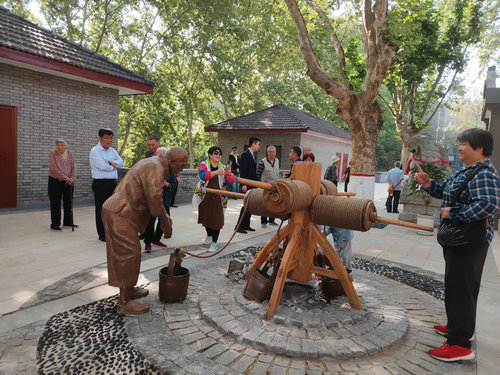 记忆中抹不去的乡愁……绞水。这是西安市西门里瓮城中的大井模型,井口直径1.6米,井深16米,上置有硬木质大型十字井架,井架上有4个木质辘轳,每个辘轳都系有两个水桶,大井上的8个大桶昼夜汲水,每次由四个彪壮大汉绞水,每天24小时不停地打水,场景十分壮观,被冠以“长安第一景”,有民谣传唱: “长安城中第一景,西门瓮城甜水井,四个辘轳八个桶。”